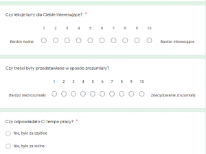 Quzilety można wykonywać na komputerze lub pobrać je sobie na komórkę – to sprawia, że kursanci na bieżąco przyswajają słownictwo z zajęć czy materiałów multimedialnych, które im podsuwamy, a przy okazji świetnie się bawią.